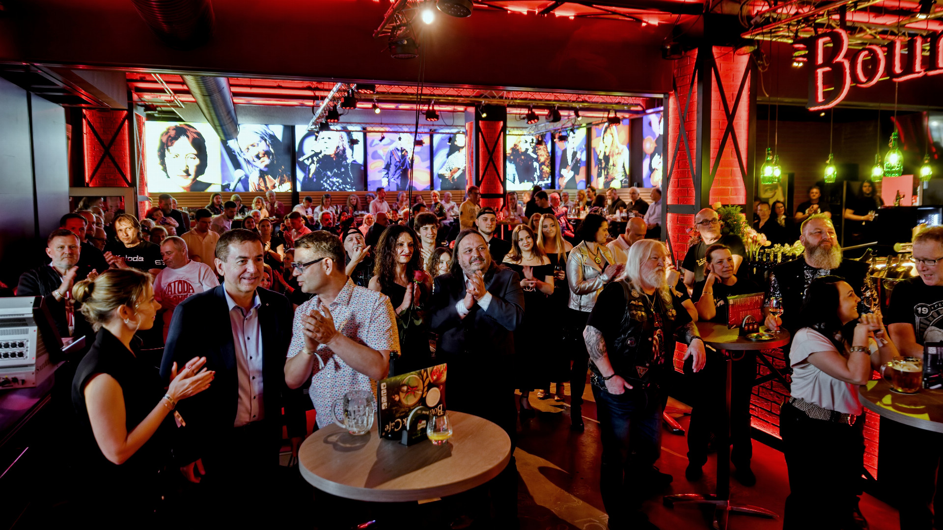 „Hudba je nejen o chytlavých melodiích a zvučných kytarových rifech, ale také hlavně o sdílení radosti. Pavel to dobře ví, a proto vymyslel akci, která dodá muzice tento podstatný rozměr. Je zkrátka rocker tělem i duší,“ říká majitel Bounty Rock Cafe Dušan Neumann, který oslavenci popřál na podiu společně s předsedou správní rady Sigmy Group Milanem Šimonovským v rámci slavnostního přípitku. Svůj gratulační projev zde poté připojil také prof. Pavel Horák, přednosta III. interní kliniky Fakultní nemocnice (FNOL). Celkem se sešlo zhruba 200 gratulantů.